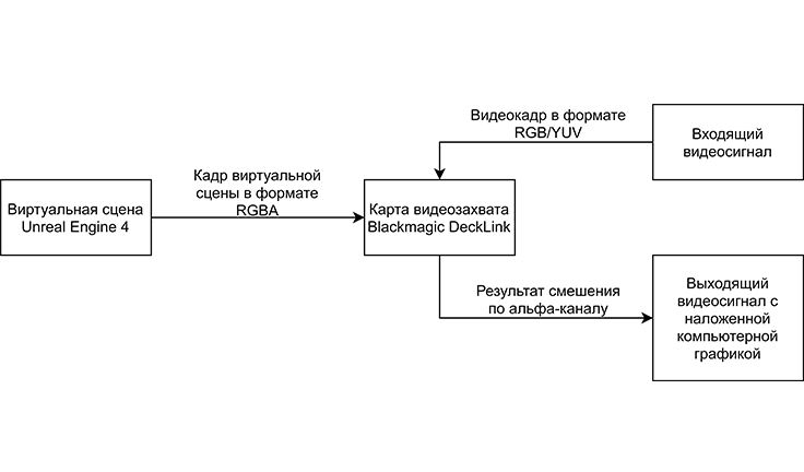Модуль для игрового движка Unreal Engine 4 создан для работы с картами скоростного видеозахвата Blackmagic DeckLink (с поддержкой 12G-SDI и 8К). Он предназначен для создания визуальных сцен смешанной (дополненной) реальности и позволяет совмещать видеопоток виртуальной сцены, созданной в Unreal Engine 4 (UE4), с видеопотоком, входящим на карту захвата с внешнего устройства (камеры), используя аппаратные возможности данной карты.