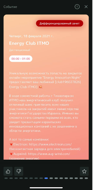 СЕРВИС РЕКОМЕНДАЦИЙ СОБЫТИЙ ИТМО активен для аватара бакалавра и магистранта; позволяет рекомендовать набор событий в Университете ИТМО в соответствии с отмеченными пользователем тематиками, датами событий и местами их проведения.