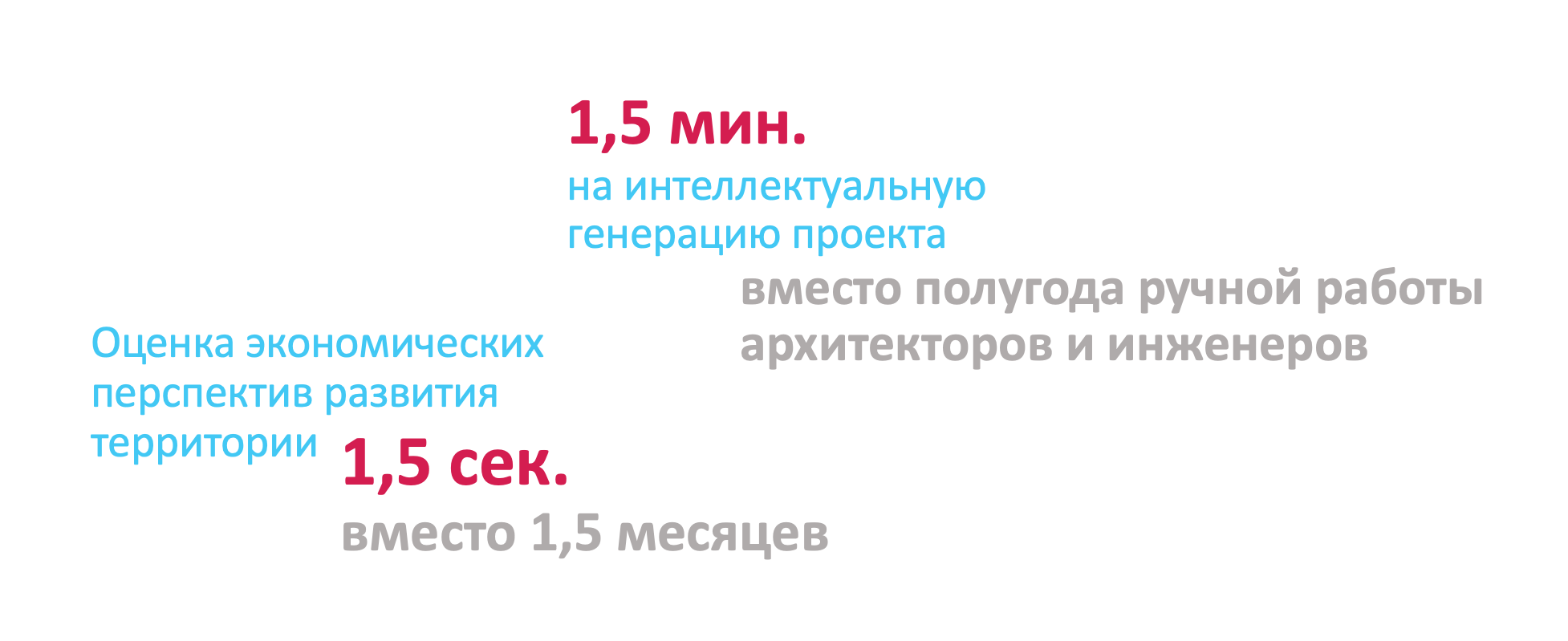 Программный комплекс основан на интеллектуальных технологиях, что позволяет быстро и эффективно генерировать проекты застройки новых районов, соответствующие современным стандартам комфортной жизни человека, оценивать и прогнозировать экономические перспективы участков и проектов для девелопмента, проверять их на соответствие существующим нормам.